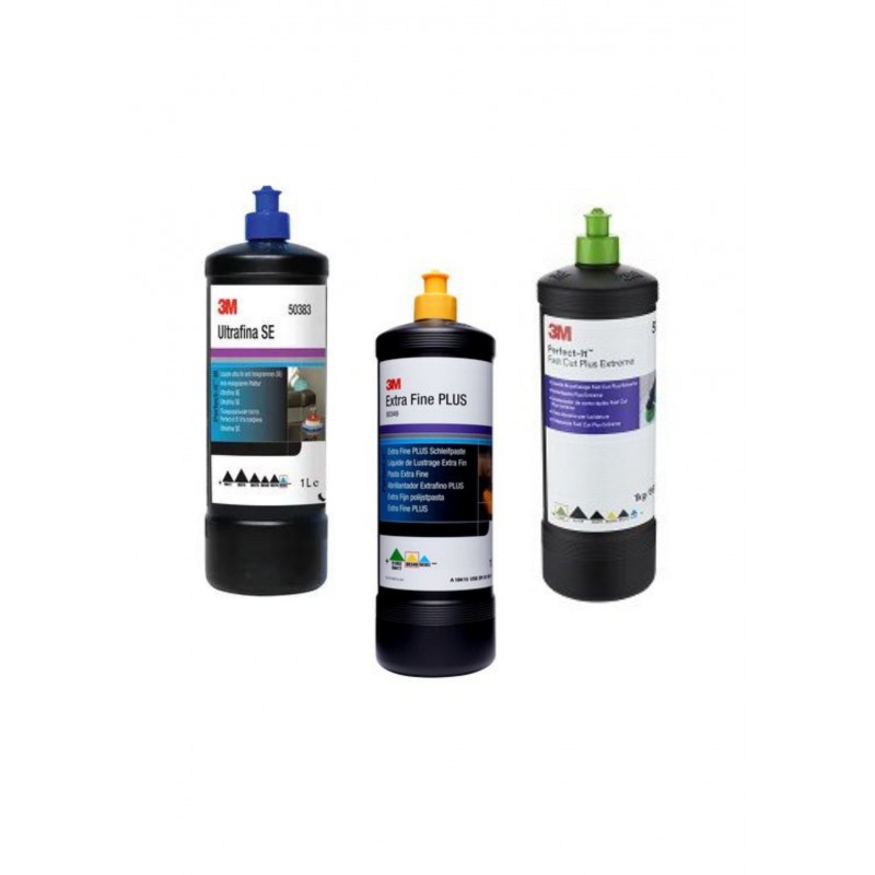 3M set polirnih past vsebuje tri polirne paste, ki zadostujejo, da opravimo celovito, tri stopenjsko poliranje.